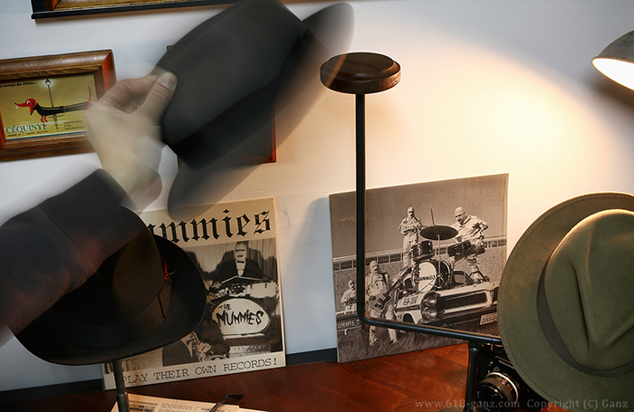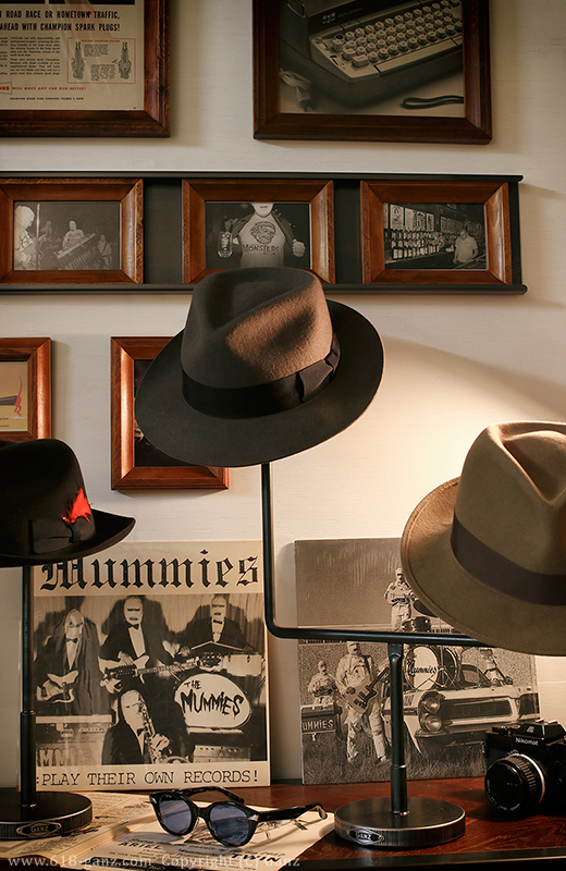 大きめのハットを立て気味にディスプレイすることもできますしテーブルトップのアイテムとの高低差を大きめにすることでより立体的なディスプレイを可能にします。